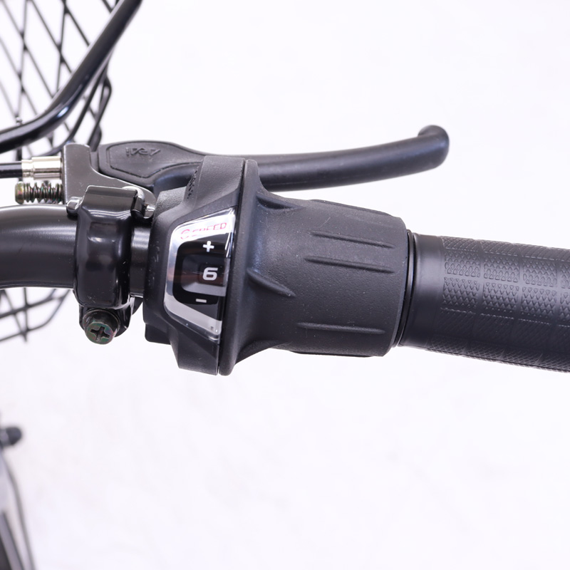 外装6段変速が搭載されていますので坂道があっても安心です。
